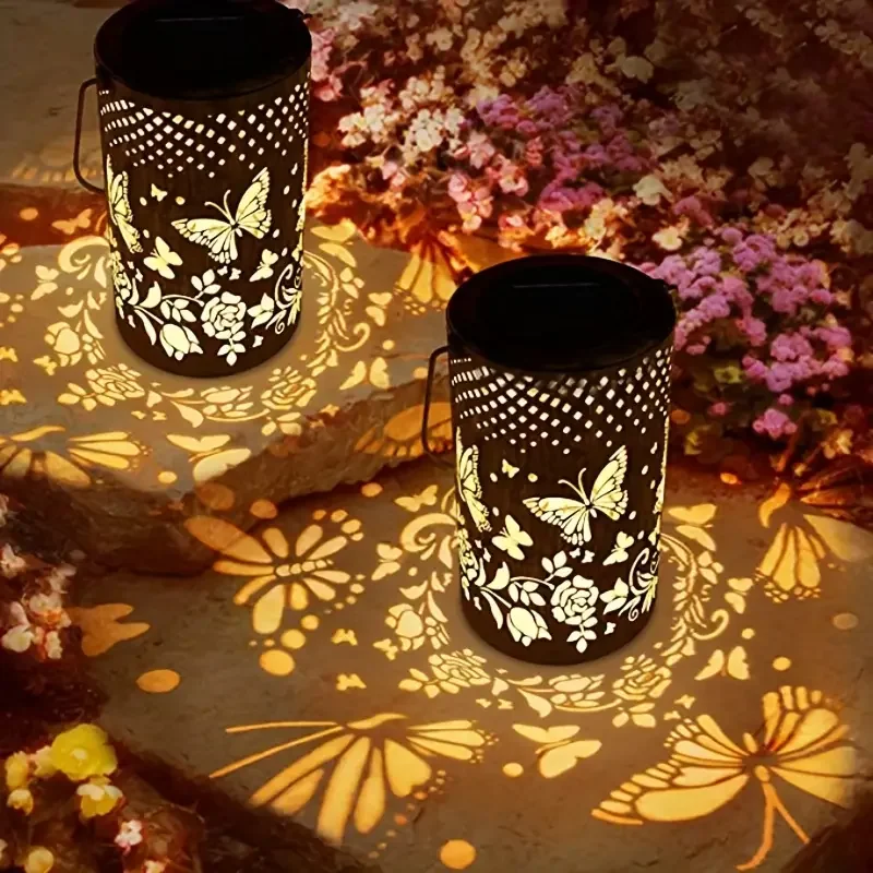 Butterfly Metal Solar Lantern, Waterproof LED Hanging Garden Light